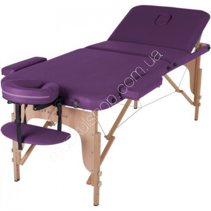 Дабы каркас приспособления оставался устойчивым перед негативным влиянием факторов из окружающей среды, он был покрыт специальным напылением. Массажный стол Арт оф Чёис Ден фиолетовый отличается своей высококачественной и особо прочной основой, на ножках которой располагаются подпятники. Относительно небольшие размеры оборудования позволяют установить его даже в небольших помещениях, или же лично у себя дома. Наличие в столе прорези для лица значительно упрощает проведения массажей, обеспечивая комфорт для клиента.