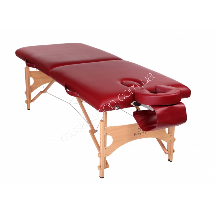 ButterflyСтол массажный Butterfly Breeze бордовыйМассажный стол Butterfly Breeze бордовый обладает специальным компактным, но невероятно удобным вырезом для лица в столешнице, которую можно закрыть с помощью небольшой подушечки. Размеры оборудования позволяют разместить его в любом помещении, даже если оно отличается своей маленькой площадью, что часто свойственно кабинетом и квартирам. Данное приспособление часто применяется для проведения процедур массажа, косметологии, а также всевозможных спа процедур и по набиванию тату. Ножки оборудования крепятся за счёт двойных болтов, а внизу на них размещаются дополнительные накладки, которые и обеспечивают устойчивость конструкции приспособления.