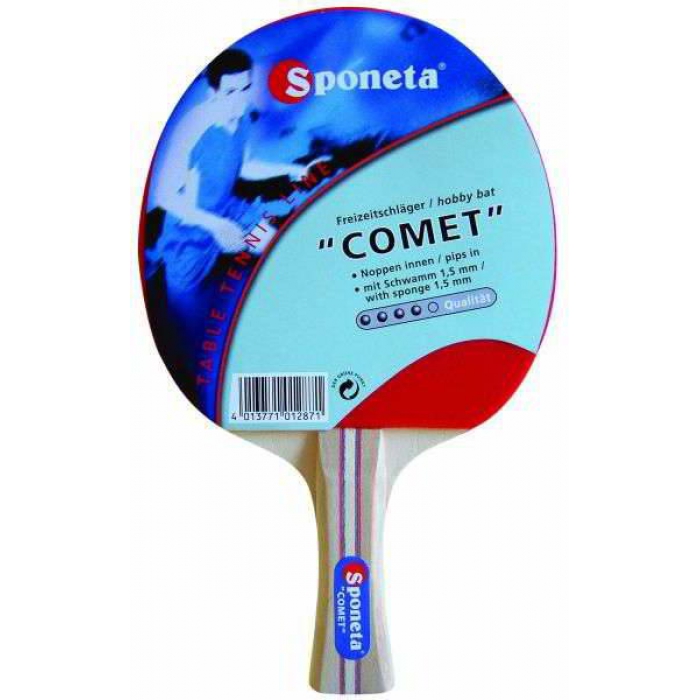 Ракетка для настольного тенниса Sponeta Comet подойдет продвинутым игрокам, для которых игра в пин-понг и хобби и спорт одновременно. Данная ракетка удобная в эксплуатации с рифленой поверхностью и 1,5 мм губкой.В момент игры анатомическая рукоятка ракетки принимает форму руки теннисиста, она не соскользнет и не вылетит в момент нанесения победного удара. Легкий вес ракетки, всего 120 г только придает ей повышенной маневренности. Производителем ракетки является известный немецкий концерн «Sponeta», это известный лидер среди теннисных столов, теннисных ракеток, а также других аксессуаров. Срок работы этой компании более 50 лет, она является мировым лауреат и победитель многих выставок, конкурсов и турниров. Не отказывайте себе в немецком качестве, закажите себе теннисные ракетки Sponetaв магазине!