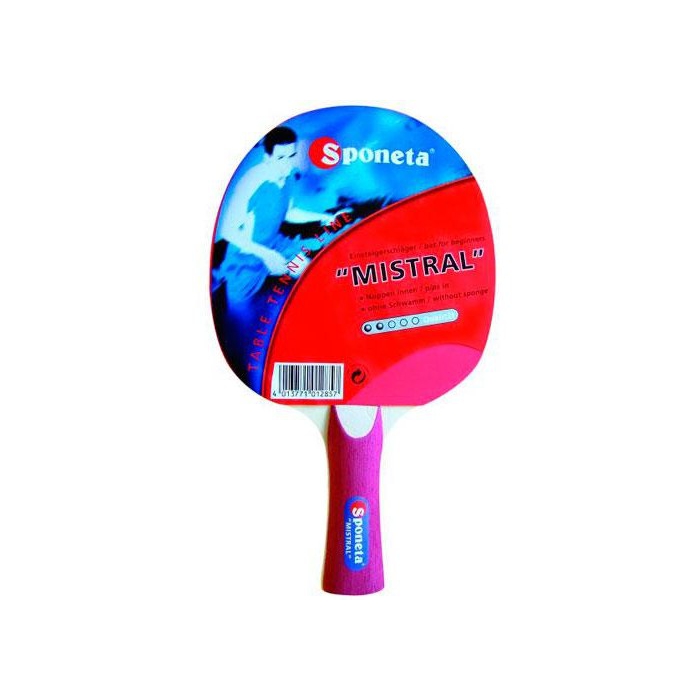 Ракетка для тенниса Sponeta Mistral идеально подойдет начинающим теннисистам, имеет слегка изогнутую форму ручки. Данная модель весьма удобная в эксплуатации с рифленой поверхностью и без губчатой прокладки. В момент игры ракета безупречно ложиться в руку, не соскальзывает и не вылетает. Ракетка очень легкая, ее масса с пипсами не превышает веса в 120 г, а масса чистого веса равна - 100 г. Немецкий производитель «Sponeta» известный лидер среди теннисных столов, теннисных ракеток, а также других аксессуаров. Общий стаж работы компании превышает 50 лет, она мировой лауреат и победитель многих выставок, конкурсов и турниров. Не отказывайте себе в настоящем качестве, покупайте теннисные ракетки Sponeta!