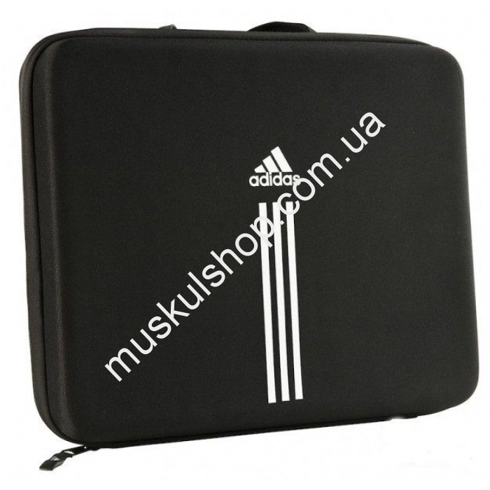 Сумка Adidas теннисная, всепогодная, она может вместить в себя сразу несколько спортивных инвентарей. Данная модель сумки заменит настоящего друга и помощника при переноске теннисных вещей. На сумку нанесен логотип спортивного бренда, оснащена сумка прочным металлическим замком. Параметры сумки позволяют с легкостью ее транспортировать, а для полного комфорта в наличии имеется широкая ручка. Сумка также может закрепляться к столу при помощи ремней на липучке. Впереди данной модели сумки размещен огромный карман для сохранности спортивных вещей. Сумка черного фирменного оттенка, пошита из нейлона, она весьма комфортная, надежная, качественная.