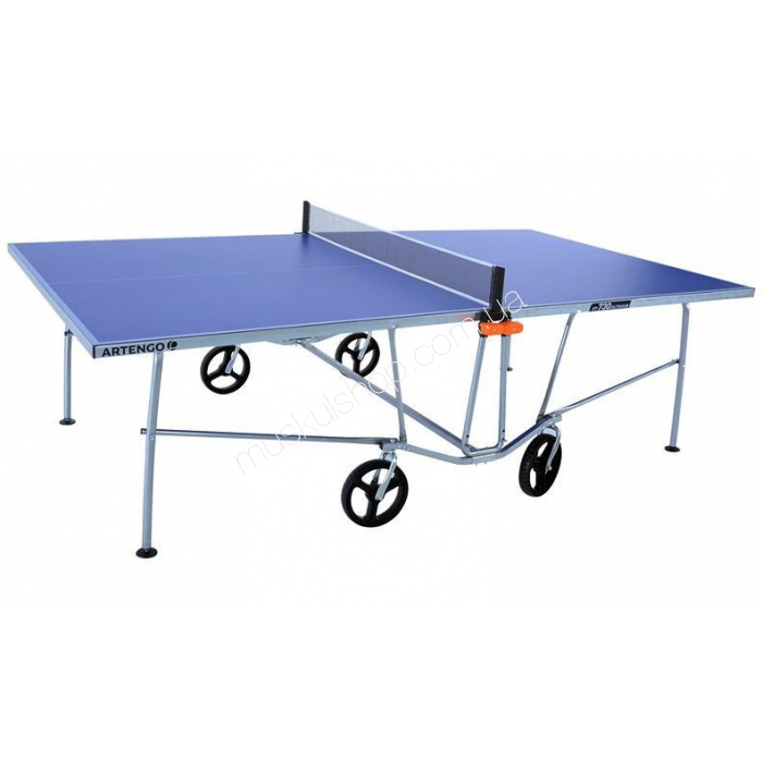 ArtengoТеннисный стол Artengo FT730Теннисный стол Artengo FT730 для игры в настольный теннис на открытом воздухе, для начинающих и продолжающих игроков. Простота установки, комфорт использования, небывалая легкость транспортировки. Качество отскока Качество отскока зависит от толщины и высоты столешницы. Чем больше толщина столешницы от 4 до 7 мм, тем лучше будет отскок. Кроме того, чем выше окантовка (от 35 до 60 мм), тем жестче игровая поверхность и тем выше будет отскок. Толщина столешницы составляет 4 мм, а окантовка из оцинованной стали - 35 х 15 мм. Безопасность использования 8 автоматических точек блокировки: блокировка и разблокировка положения столешницы с помощью кнопок. Специальный сигнал уведомит Вас о том, что положение столешницы заблокировано. Легкая и простая транспортировка. Стол очень легко перемещается благодаря 4 большим колесам. Вы можете складывать и раскладывать стол самостоятельно. Можно поднять одну сторону стола и играть одному. Процесс транспортировки даже по неровной поверхности несложен благодаря наличию 4 колес. Регулируемое натяжение сетки. Ролик (диаметр 20 мм) для регулировки положения ножек (высота 50 мм). Состав: доска: 100.0% Меламин (MF) трубка: 100.0% сталь. Стол соответствует европейскому стандарту EN14468-1. Стол прошел все тесты на соответствие европейским стандартам в нашем Техцентре и на спортивных площадках в реальных условиях игры. Ограничения по использованию: Не оставлять стол с закрытой столешницей на сильном ветру. Рекомендации по хранению Вы можете оставлять стол на улице, сняв сетку, или убирать его в защищенное от ветра место после игры. Рекомендации по уходу: Мы советуем периодически промывать стол натуральными чистящими средствами (например, мыльной водой).
