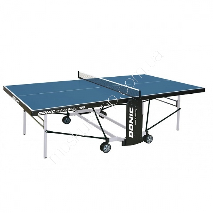 Стол для настольного тенниса Donic Indoor Roller 900 Blue - прочный компактный, складной теннисный стол для любительской игры в ping pong в закрытых помещениях. В основании стола расположены ячейки для хранения ракеток и мячей;