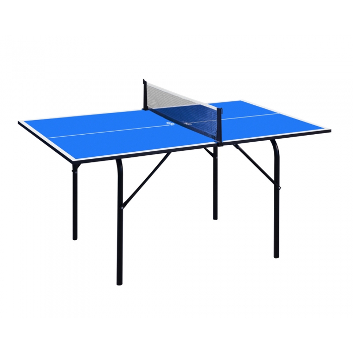 Стол теннисный GSI-sport Junior Black Теннисный стол для закрытых помещений. Предназначен для детей дошкольного возраста и начальных младших классов. В качестве материала для игровой поверхности используется специально обработанная древесностружечная плита (ДСП) толщиной 16 мм. На ДСП нанесено специальное пластиковое покрытие синего цвета. Игровая поверхность базируется на двух складываемых ножках, которые имеют жесткие фиксаторы в игровом положении. Конструкция изготовлена из металлического трубчатого профиля диаметром 25 мм с полиэфирным покрытием. Стол комплектуется сеткой. Продуманная конструкция складывания позволяет теннисному столу занимать минимум места при хранении.