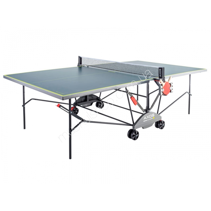 Стол Kettler теннисный модель Axos Indoor пользуется большим спросом среди профессиональных теннисистов и любителей. Выполнен стол из 22 мм плиты ALU-TEC серого цвета, с антибликовым покрытием. Выделяется модель держателем ракеток и теннисных мячиков. Стол стандартных размеров, он предназначен для игр на улице и полностью крытых помещениях. Бесспорно, можно сказать, что все столы Кетлер изготовляется согласно немецкой технологии, имеют соответствующие сертификаты качества. Конструкция стола складная, состоящая из двух частей, складывает моментально, а для удобства транспортировки предусмотрены четыре ролика, а также два тормоза, размещенных по диагонали. Каркас стола выполнен из круглой 25 мм трубы, кроме этого оснащен стол встроенной сеткой. Диаметр колес, материал: 14 см / пластик. Сетка с зажимным механизмом, регулировка высоты и натяжения. 2 отдельные полностью собранные половины, время сборки стола - 5 мин. Легко складывающийся каркас из квадратной трубы (50х50 мм) с компенсаторами неровности пола. Система независимой вертикальной транспортировки с 2 встроенными роликами на каждой половине стола.