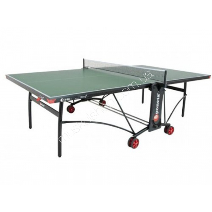 SponetaТеннисный стол Sponeta S3-86iТеннисный стол Sponeta S3-86i отличается своей прочной и современной конструкцией, которая значительно повышает его эргономичность. На ножках стола имеются удобные накладки из износоустойчивой резины, которые обеспечивают его устойчивость. Игровая поверхность аппарата создана из специального пластика, покрытие которого обеспечивает отскок мячикам. Цвет столешницы не утомляет глаза пользователя, а антибликовый эффект не мешает спортсменам во время игры и не отвлекает от слежения за мячиком.