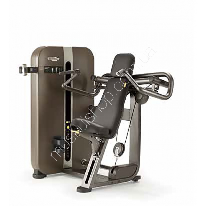 Тренажер SHOULDER PRESS TechnoGym оснащен рукоятками для жима пресса изогнутой формы. Дисплей демонстрирует тип упражнения, качество выполнения и остаток времени до окончания, давая возможность спортсмену передохнуть, самостоятельно выбирая время на отдых, информируя спортсмена о вероятных перегрузках организма. Модель специализируется на тренировке дельтовидной группы мышц. Умный настройщик, дисплей позволяет провести необходимые манипуляции по настройке тренажера, обладает очень мягким и плавным ходом, а сиденье подстроится под вас автоматически, сидя на нем. Тренажер восстановит структуру пресса, дельтовидных мышц и бицепсов, буквально напичкан программами для тренировок. Тренажер оснащен двумя стеками для лучшего качества тренировок, один стандартный на 70 кг и усиленный на 100 кг, общий вес 234 кг, изготовлен с качественных материалов сиденье с прочных и эластичных материалов.