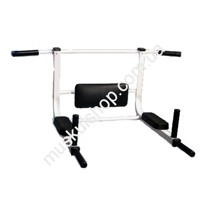 Комбинированный тренажер, предназначен для подтягиваний узким параллельным и широким хватом, а также отжимания на брусьях и выполнением упражнений на пресс.