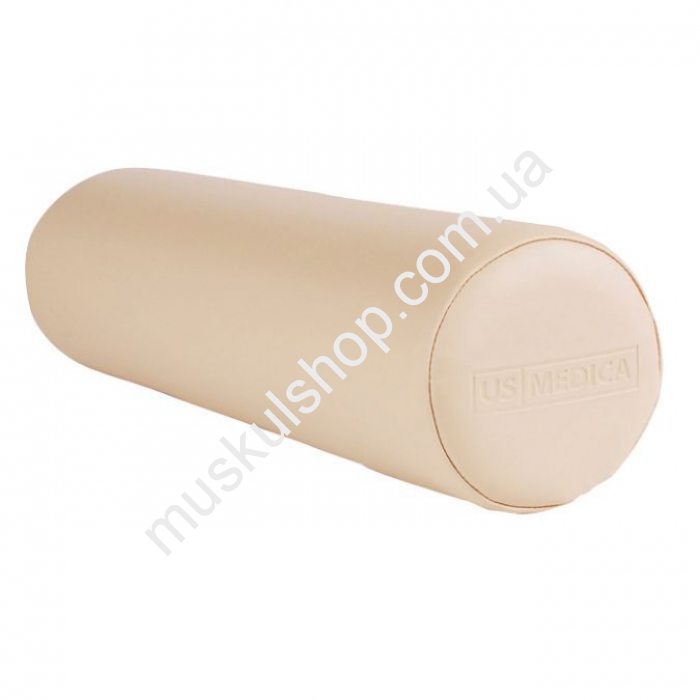 US Medica упругий массажный валик средних размеров. Произведен из вспененной пены, весом до 500 грамм, обшит качественным кожзаменителем. Валик не мнется и очень долго сохраняет первоначальную форму. Валик многофункциональный, можно подкладывать под любые части тела пользователя. Применяется как в домашних условиях, а также массажных салонах и при частных массажах. Во время массажа не скользит под человеком, а массажисту очень удобно выполнять массаж. Просто незаменимый, когда ноги свисают с массажного стола. Такой валик выравнивает позвоночник, снимает боли с поясницы, лучше всего подкладывать под шею, колени, голени, нижнюю часть спины и руки.