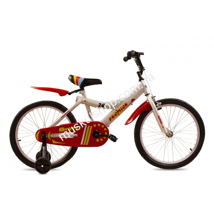 Велосипед Premier модель Bravo выполнена в 20-ти дюймовой стальной раме белого цвета с красными крыльями. Комплектуется одной скоростью, назначение для городского цикла, а для полной устойчивости предусмотрены боковые, съемные колеса. Рассчитан велосипед на шестилетних детей. Для защиты детских ножек, крепится к раме защита от цепи, а педали модели вылиты из прочного пластика. Кроме этого велосипед комплектуется комфортным седлом для путешествий. Колеса модели, окрашенные, а каретка от американского производителя, надежная и безотказная. Система торможения состоит из переднего ручного и заднего барабанного тормоза, который приводиться в действие путем зажимания в противоположную сторону. Педали модели изготовлены из прочного пластика.