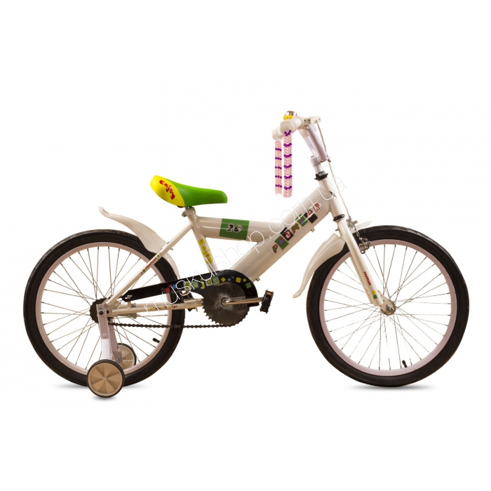 Велосипед Premier модель Enjoy разработан для юных фей школьного возраста. Производители выполнили модель в белом стильном цвете из 20 дюймовой стальной рамы. На велосипеде установлена одна скорость, предназначена модель для поездок по городу, а для полной устойчивости предусмотрены боковые, съемные колеса. Кроме этого велосипед комплектуется комфортным седлом для путешествий, а также прочной и надежной американской кареткой. Для защиты детских ножек, крепится к раме защита от цепи, педали модели окрашены, вылиты из прочного пластика. Модель отличается уникальным, ярким и стильным дизайном. Велосипед характеризуется новейшей системой торможения, которая состоит из переднего ручного и заднего барабанного тормоза, который приводиться в действие путем зажимания в противоположную сторону.