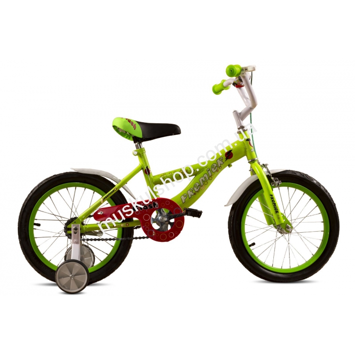 Велосипед Premier модель Flash цвета лайм с белыми крыльями никого не оставит равнодушным. Модель полностью безопасная, например, для безопасности детских ножек, крепится к раме защита от цепи, педали модели окрашены, вылиты из прочного пластика. Модель отличается от других моделей выразительным и стильным дизайном, стальной прочной 16 дюймовой рамой. Велосипед комплектуется комфортным седлом для путешествий, а также прочной и надежной американской кареткой. Велосипед оснащен надежной системой торможения, которая состоит из переднего ручного и заднего барабанного тормоза, который приводиться в действие путем зажимания в противоположную сторону. На велосипеде предусмотрена одна скорость, служит модель для поездок по городу, а для полной устойчивости предусмотрены боковые, съемные парные колесики.