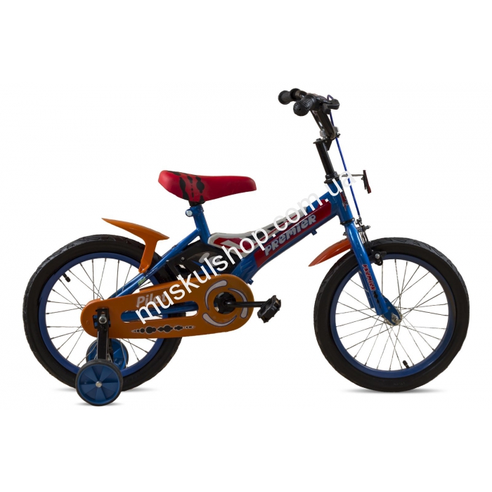 Велосипед Premier модель Pilot яркое воплощение уникального стиля и практичности, ведь он оснащен всем необходимым. Велосипед произведен из стального сплава, оснащен комфортным седлом для путешествий, а также прочной и надежной американской кареткой. Размер рамы составляет 16 дюймов, выполнена модель в синем цвете. Велосипед выделяется хорошей безопасностью, так, к примеру, к раме прикреплена защита от цепи. Колеса надувного типа, обуты в шипованный протектор. Рассчитан велосипед для детишек дошкольного и школьного возраста. На велосипеде предусмотрена одна скорость, для полной устойчивости предусмотрены боковые колесики. На велосипеде установлена надежная система торможения, которая состоит из переднего ручного и заднего барабанного тормоза, который приводиться в действие путем зажимания в противоположную сторону.