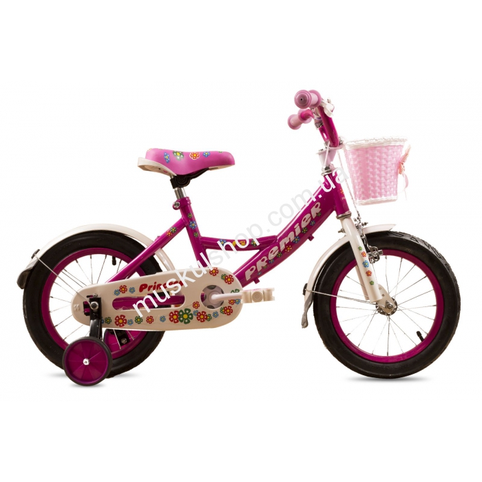 Велосипед Premier модель Princess сконструирован специально для настоящих фей, впереди размещена корзинка для перевозки вещей. Отличается модель комфортным седлом для путешествий, а также прочной и надежной американской кареткой. Велосипед односкоростного типа, а для полной ее устойчивости предусмотрены боковые колесики. Укомплектован велосипед прочными надувными колесами, с окрашенным розовым ободом. Выполнен велосипед с прочного стального сплава, общим размером 14 дюймов. Для защиты детских ножек предусмотрен безопасный чехол на цепь. Укомплектован велосипед надежными тормозами, впереди установлен тормоз типа V-Brake, а сзади предусмотрен барабанный тормоз, который приводиться в действие путем зажимания в противоположную сторону.