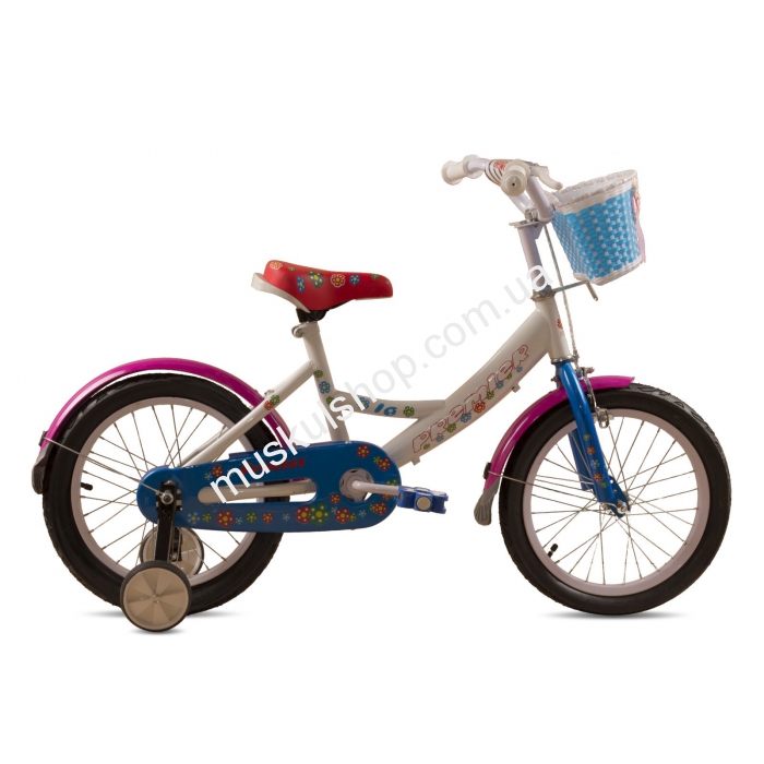 Велосипед Premier модель Princess повышенного комфорта и безопасности, в котором, для защиты ножек детей предусмотрен безопасный чехол на цепь, а для полного комфорта впереди руля размещена корзинка для перевозки вещей. Отличается модель комфортным седлом для путешествий, а также прочной и надежной американской кареткой. Оснащен велосипед надежными тормозами, впереди установлен тормоз типа V-Brake, а сзади предусмотрен барабанный тормоз, который приводиться в действие путем зажимания в противоположную сторону. Велосипед односкоростного типа, а для полной ее устойчивости предусмотрены боковые колесики. Укомплектован велосипед прочными надувными колесами, с окрашенным розовым ободом. Комплектуется он прочной 16 дюймовой стальной рамой, белого цвета.
