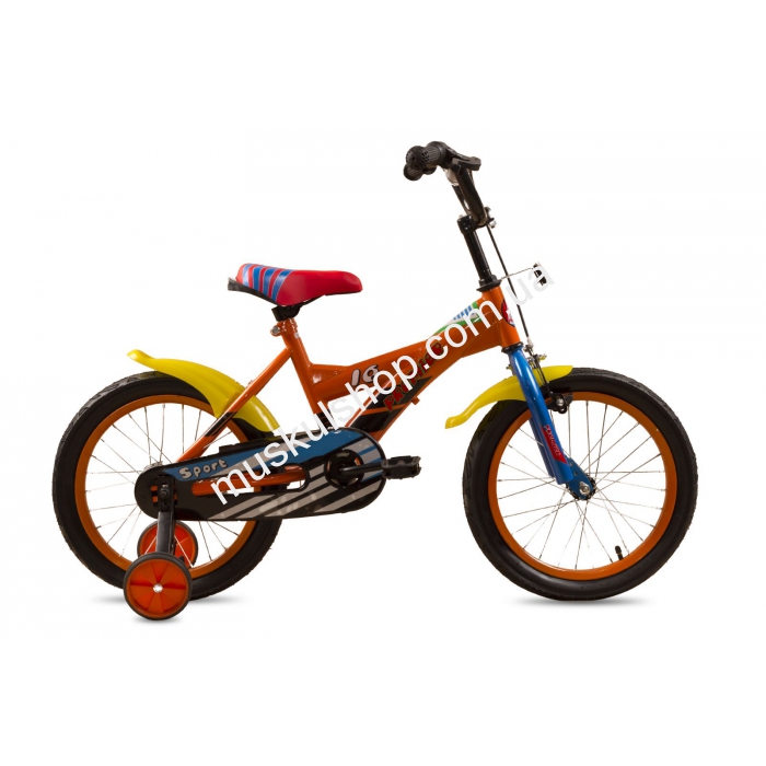 Велосипед Premier модель Sport выделяется ярким, спортивным дизайном, желтыми съемными крыльями и большой маневренностью. Велосипед оснащен одной передачей, односкоростного типа, для полной его устойчивости предусмотрены боковые колесики. Представлена модель в 16 дюймовой стальной раме, оранжевого цвета. На велосипеде установлены прочные надувные колеса, с окрашенным ободом и широким протектором. Пожалуй, это одна из моделей, которая сочетает в себе наилучшее: прочные и надежные тормоза барабанного и ручного типа, боковые колеса, съемные пластиковые крылья и удобное широкое седло. Задняя каретка произведена американскими производителями, а еще для защиты ножек детишек предусмотрен безопасный чехол на цепь. Предназначен велосипед для детей школьного и дошкольного возраста.