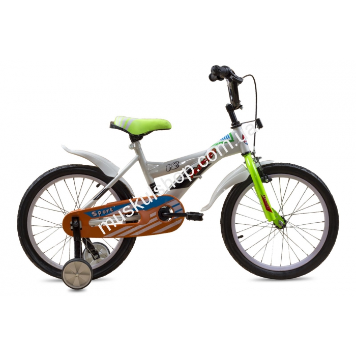 Велосипед Premier модель Sport характеризуется надежностью, прочностью и большой маневренностью, он собран из хороших комплектующих, например, прочных и надежных тормозов барабанного и ручного типа, боковых колес, съемных пластиковых крыльев и удобного широкого седла. Отличается велосипед уникальным и стильным дизайном. На велосипеде установлены прочные надувные колеса, с окрашенным ободом и широким протектором, способным прочно держать трассу. Предназначен велосипед для детей 6-ти летнего возраста. Каретка американского производства, а для защиты ножек от цепи предусмотрен чехол. Велосипед предусмотрена одна передача, для полной устойчивости велосипеда предусмотрены боковые колеса. Представлен велосипед в 18 дюймовой раме белого цвета со съемными белыми крыльями.