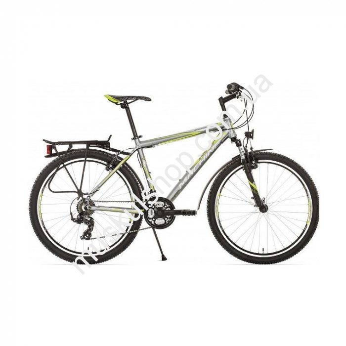 Велосипед MTB модель Manhattan City отличается прочной пружинно-эластомерной вилкой Hardtail. Велосипед двойного назначения, отличается большой проходимостью, маневренностью, можно ездить в городе и за его пределами. Комплектуется багажником, ножкой для фиксации велосипеда. Тормозная система отличается прочными, ободовыми механическими тормозами, системы V-Brake. Все установленные комплектующие от известных японских и европейских брендов превращают обычный велосипед в бойца гоночных улиц. В данной модели предусмотрено 21 различная вариация передач. Рама 18 дюймов, прочная, надежная алюминиевая желто-коричневого оттенка, которая укомплектована звездочкой, где находиться 7 кассет различного размера для быстрого переключения передач, а также 26 дюймовыми везде проходимыми колесами.