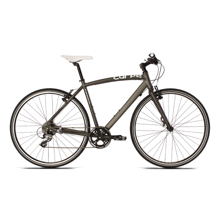 Велосипед Orbea Carpe 50 укомплектован задними и передними переключателями от Шимано, надежная и безотказная трансмиссия, предусмотрено 11 вариантов скоростного режима. Модель изготовлена из алюминиевого сплава, обутый в 28-ти дюймовые, алюминиевые обода с прочными покрышками, представлен в сером цвете. На велосипеде установлена вилка пружинно-эластомерного типа. Сидение эргономическое, руль гнутой формы, прочно зафиксированный и регулируемый. Байк с прочными, рельефными педалями, система торможения ободовая, типа V-Brake. Он покоряет не только асфальтное покрытие, но и загородные пески и трясины. Велосипед Орбеа Карпе 50 подходит новичкам, профессионалам и просто для семейного отдыха.