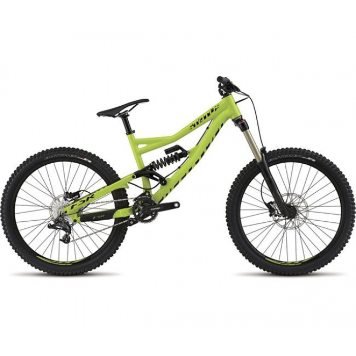 Велосипед Specialized STATUS FSR I 2015 с пружинным амортизатором, создан для бездорожья и прыжков, поставляется без педалей, сиденье мягкой, руль изогнутой формы. Байк создан для агрессивного стиля езды, крутых спуском и гор, поглощает неровности. Модель отличается воздушным типом вилки, с ходом 17 см, прочным амортизатором и алюминиевой рамой. Байк представлен в нескольких цветовых гаммах, установлена переключатели и трансмиссия Sram, предусмотрено 9 различных передач, хороший вариант для разносторонней езды. Байк обутый в 26 дюймовые покрышки, оснащен хорошей подвеской. Велосипед СТАТУС ФСР I 2015 характеризуется плавным ходом, надежным рулем и гармоничными формами, стильным видом и дизайном, оснащен велосипед дисковыми тормозами, гидравлического типа.