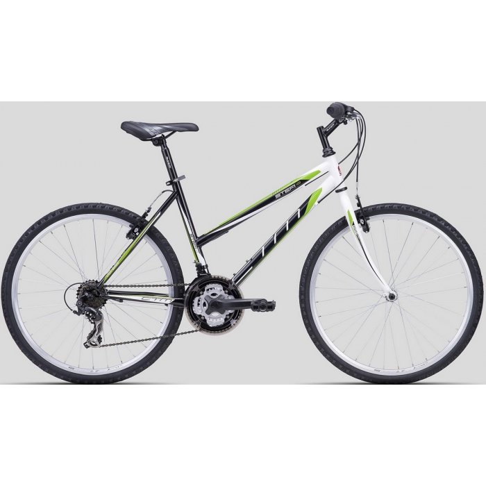 СТМВелосипед СТМ Stefi 1.0 black greenВелосипед СТМ Stefi 1.0 black green можно назвать настоящим дорожным мотоциклом, только немного в другом формате и без двигателя. Данное приспособление обладает надёжной трансмиссией, которая обеспечивает долгий срок службы аппарата. Представленный велосипед идеально подходит для тех, кто хочет натренировать мышцы или научиться развивать высокую скорость. Рама аппарата изготовлена из алюминия и термически обработана для обеспечения дополнительной прочности. Вилка велосипеда отличается уменьшенной массой, а также она позволяет более легко управлять велосипедом.
