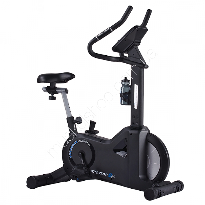 SporTopВелотренажер Sportop U60Велотренажер Sportop U60 - вертикальный велотренажер для занятий спортом дома. Отличается стильным и оригинальным дизайном. Электронная регулировка нагрузки с помощью консоли; Удобный наклон дисплея; Программный модуль имеет 12 встроенных программ; Сенсорные датчики измерения пульса расположены на мультипозиционных эргономичных рукоятях; Комфортное сидение, регулируемое по высоте и по горизонтали; Удобный держатель для бутылки с водой; Процесс перемещения легок и удобен, благодаря оснащению транспортировочными роликами; Контактное измерение пульса; Прекрасную устойчивость обеспечивают компенсаторы неровности пола.