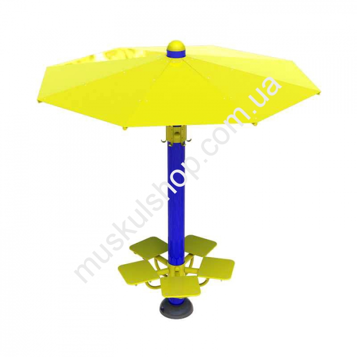 Вешалка с навесом Интер Атлетика SL 130 отличное место для сохранности вещей, личной и верхней одежды. Выполнена модель в форме зонтика, представлена в желто-синем цвете, изготовлена из стального сплава, общей массой 126 кг. Габариты вешалки позволяют разместить до пяти пользователей одновременно, повесить спортивную одежду на крючки в момент интенсивных тренировок на воздухе. Длина вешалки составляет 2,15 метра, а высота 2,37 метра, способна спрятать от дождя и солнца, а для полной фиксации можно забетонировать основание изделия. Запрещены занятия при снегопаде, дожде и сильном ветре, чтобы нивелировать возникновение травматизма.