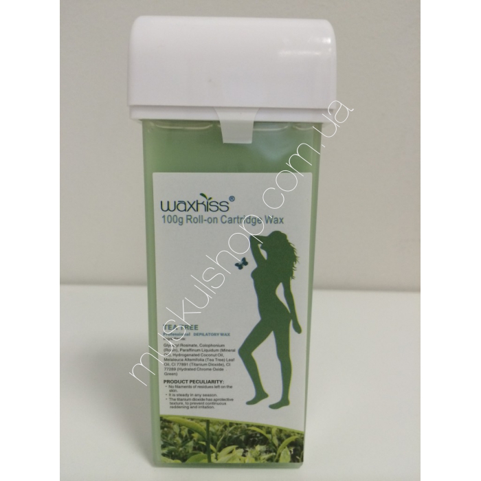 WaxkissВоск в картридже Waxkiss 100г чайное деревоВоск в картридже Waxkiss 100г чайное дерево прекрасно подойдёт не только для женской половины общества, ведь, если необходимо, им могут воспользоваться и мужчины. Данное средство мягко воздействует на кожу, оставляя её мягкой и шелковистой, а также увлажнённой после каждого применения. После каждого нового применения волоски на вашем теле будут более тонкими, а их количество значительно уменьшится, поскольку они будут удалены с корнем. Представленное приспособление прекрасно помогает в удалении волос с практически любого участка тела.