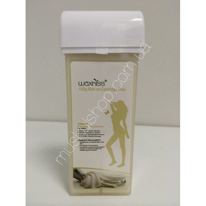 WaxkissВоск в картридже Waxkiss 100г кремВоск в картридже Waxkiss 100г крем можно использовать на любом участке тела, дабы избавиться от лишних волосков. Компактные размеры данного средства позволяют брать его с собой, а также значительно облегчают хранение. Представленное средство прекрасно подойдёт для любого типа кожи, поскольку не вызывает аллергии и раздражения благодаря качественным компонентам. Специальная улучшенная формула позволяет вашей коже после каждой процедуры оставаться гладкой, шелковистой и увлажнённой. Одним из плюсов является тот факт, что после любой процедуры волос на теле становится не только значительно меньше, но также они растут намного медленнее, чем после использования бритвы.