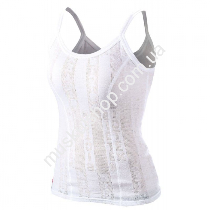 Майка Biotex женская на бретельках идеально подойдет для летнего периода времени, в момент пробежек или волейбола. Майка хорошо облегает, подчеркнет ваши мышцы, торс, во время тренировок, движений он не сковывает движений для человека. Подобная модель майки отлично подойдет для каждодневной носки. Пошита модель из 100% полипропилена, в наличии много разных размеров, под заказ. Майка хорошо поддается стирке, абсолютно не раздражает кожу и не вызывает аллергии. Изделие отлично сохраняет изначальную температуру тела спортсмена, в нем очень комфортно, уютно и тепло, выводит влагу и лишнюю влагу. Модель может регулировать температурный режим, в пределах плюс 35С. Представлена майка на бретельках в белом цвете, с короткими рукавами, на которую нанесен фирменный логотип бренда.