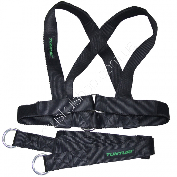 Жилет для саней для кроссфита Tunturi X-shape Pull Harness For Sled 14TUSCF075 оборудование, которое используется вместе с санями для кроссфита и, фактически, является неотъемлемой их частью, которая формирует общий комплект. Проще говоря, данное оборудование необходимо закрепить на санях, а после же, надеть на себя, используя в качестве дополнения для того, чтобы сдвинуть сани с места. Жилет для саней для кроссфита Тантури Икс-шейп Пулл Харнемм Фор Слид 14ТЮССФ075 создавались с использованием прочного и высококачественного материала, что не протирается и не рвется и, в то же время, не натирает кожи спортсмена во время тренировочного процесса. Данное оборудование состоит из основной части в виде жилета и из длинного пояса, который фиксируется на самом жилете, цепляясь за кольцо, и на санях.