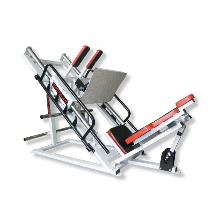 Тренажер комбинированный жим ногами и гак машина Haukka К243 - коммерческого класса для использования в спортивных залах. В одном тренажере реализовано два режима работа для выполнения упражнений жим ногами и гак машина. Для смены положений нужно переставить спинку с одной платформы на другую и сменить угол наклона верхней платформы. Смена положений осуществляется подпружиненными фиксаторами, поэтому нужно только одной рукой оттянуть фиксацию и второй сменить положение. Для плавности передвижения платформы используются ролики, из специальной износостойкой марки пластика, что снижает шум и увеличивает плавность. В каждом ролике установлены подшипники, а в станках придается округлость отдельно каждому ролику, поэтому платформа выдерживает большие нагрузки, обладает запасом надежности и ездит плавно, даже в случае не симметричной постановки ног не боясь перекосов.