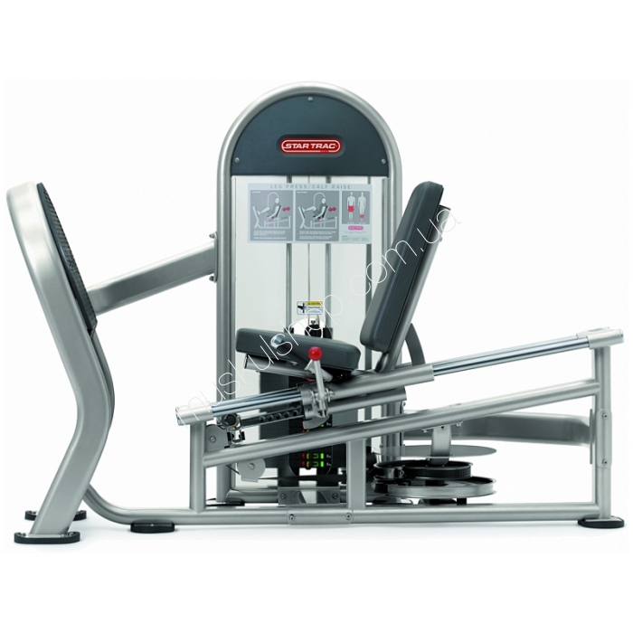 StarTracЖим ногами, икроножные Star Trac Instinct D1013Жим ногами, икроножные Star Trac Instinct D1013 легко поддаётся необходимым настройкам, а потому его можно легко подстроить под рост любого пользователя. Мягкое сидение со спинкой служит также и в качестве движущей платформы, за счёт которой возможно выполнение упражнений. Аппарат оснащён удобными ручками с мягким покрытием в виде грипс, которые одновременно служат и опорой и поддержкой, дабы облегчить возможность выполнения упражнений. Также представленное приспособление оснащено удобной опорной платформой, которая обладает удобным и не скользящим покрытием.