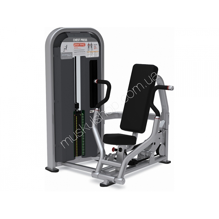 StarTracЖим от груди Star Trac Impact S4301Жим от груди Star Trac Impact S4301 отличается своей универсальной конструкцией, которая подойдёт для тренировок абсолютно любых пользователей. Данный аппарат подойдет как для людей, которые только начали заниматься спортом, так и для спортсменов любых видов спорта. Благодаря этому тренажеру есть возможность накачать определённые группы без дополнительных усложнений и без каких-либо дополнительных приспособлений. Конструкция аппарата позволяет полностью изолировать суставы и позвоночник, дабы нагрузка на них не воздействовала.
