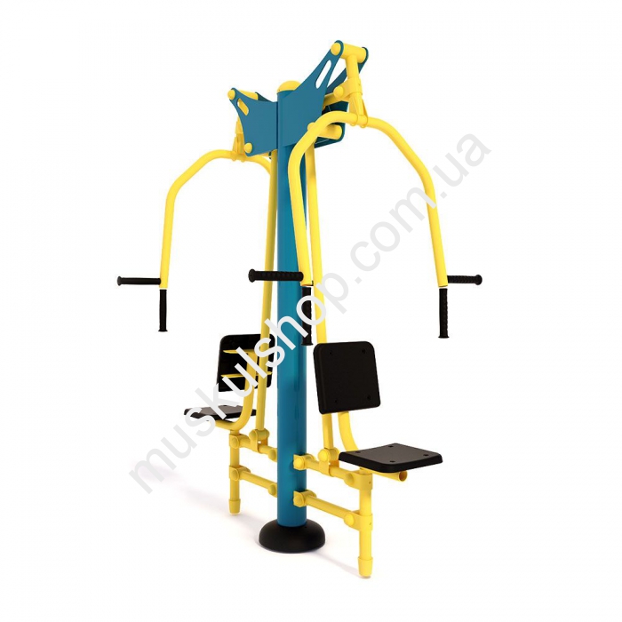 Жим сидя от груди Интер Атлетика SL 101 относится к линейке уличных тренажеров, способных развить выносливость, наполнить тело и мышцы кислородом, придать уверенности и сил. Тренажер очень удобный в эксплуатации, эффективный, безопасный, многофункциональный и надежный. Подходит для женщин и мужчин от 14 до 70 лет включительно. Тренажер рассчитан на развитие мышц рук, предплечья и плечевого пояса, помогут вернуть былую физическую форму и обрести рельефное тело. Габариты тренажера позволяют размещать его на открытой площадке, выполнен в желто-голубом цвете. Общий вес спортивного изделия составляет 75 кг, длина 1,60 метра, в высота 2,05 метра. Запрещены занятия при снегопаде, дожде и сильном ветре, чтобы нивелировать возникновение травматизма.