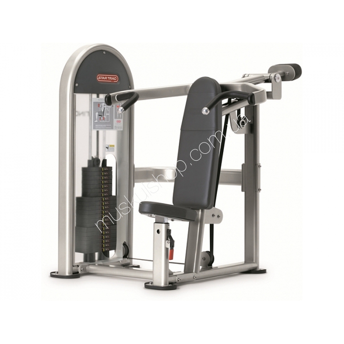 StarTracЖим вверх StarTrac Instinct S4100Жим вверх StarTrac Instinct S4100 отличается своими относительно компактными габаритами, благодаря которым тренажёр поддаётся установке в любом типе помещения. Наличие рукоятей значительно облегчает работу с ним, а благодаря покрытию на тех руки пользователя никогда не будут соскальзывать. Мягкие части аппарата способствуют дополнительному комфорту даже во время интенсивных занятий, тем более, что они покрыты прочной и устойчивой перед износом кожей. Сидение легко поддаётся регулировке под рост пользователя, а потому вы даже сами можете настроить его индивидуально под себя.