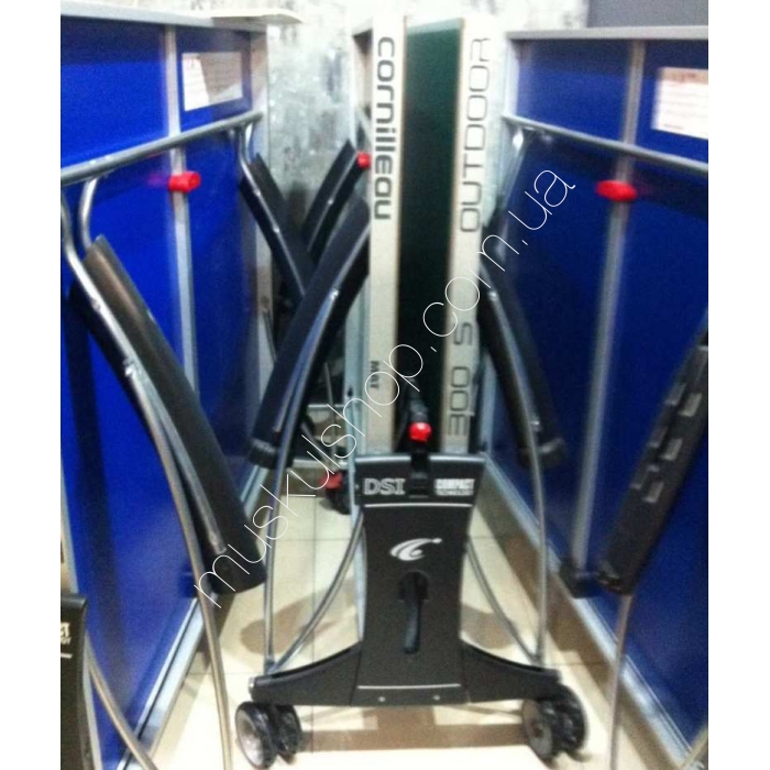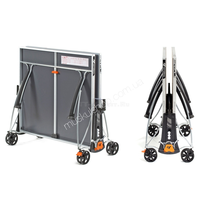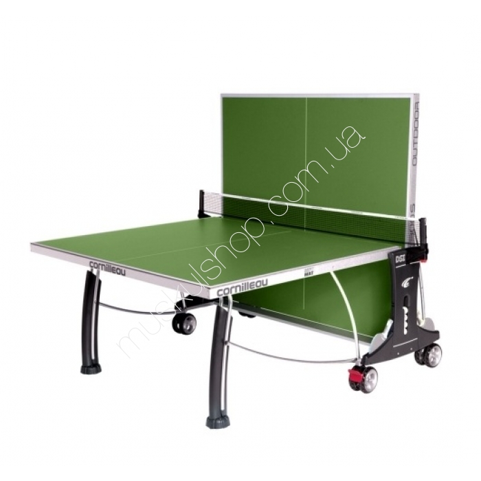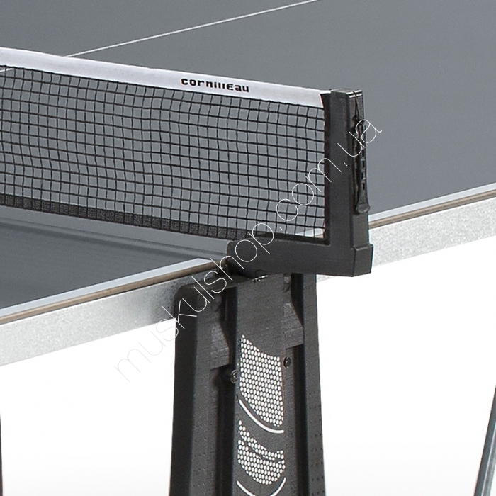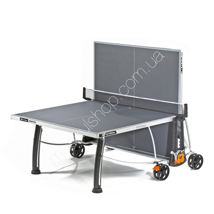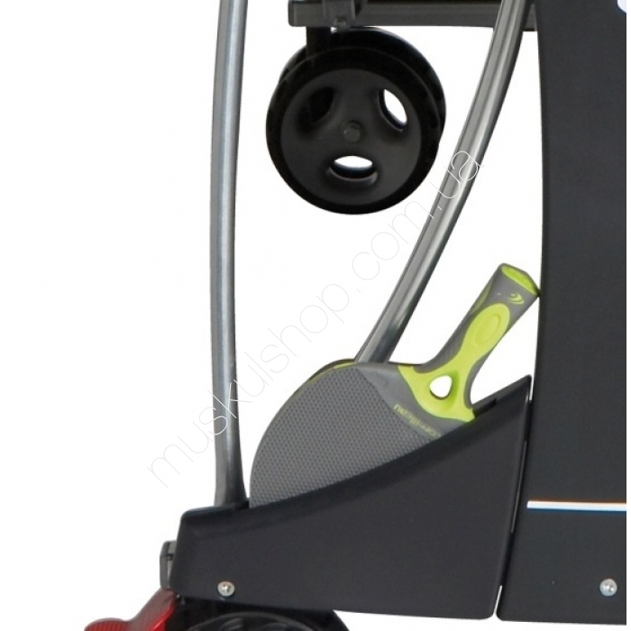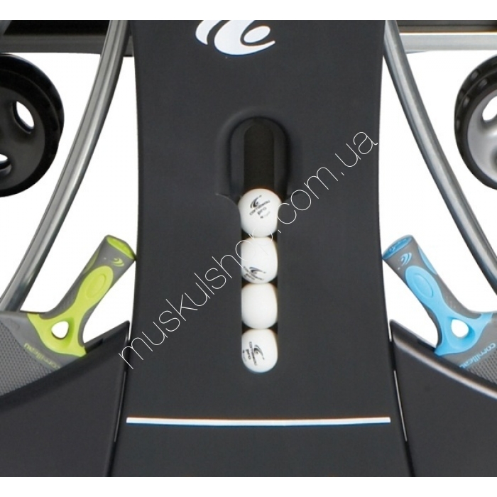 Гарнитур: сетка входит в комплект стола; боковые держатели для ракеток и шариков.