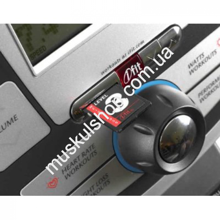 Компьютер с индикацией следующих параметров: время, скорость, дистанция, расход калорий, пульс и уровень нагрузки в Ваттах. Извещение о превышении заданных параметров. Компенсаторы неровности пола.