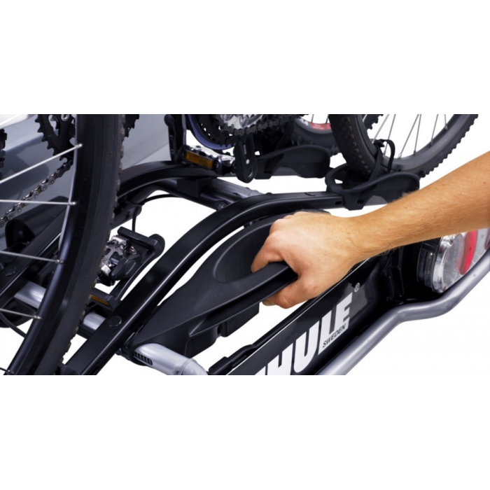 Багажник на фаркоп для 2-х велосипедов Thule EuroRide 941 941005 можно хранить практически в любом помещении и месте, поскольку приспособление обладает складной конструкцией и компактными габаритами. Благодаря уникальной системе монтажа представленный багажник может самостоятельно установить на машину даже новичок. Представленный аппарат можно установить практически на любую марку машины. За счёт того, что у представленного приспособления имеются дополнительные компоненты в виде резины, ни автомобиль, ни велосипед не повержены повреждениям. Багажник на фаркоп для 2-х велосипедов Тале ЕвроРайд 941 941005 оснащён простым, но невероятно удобным и надёжным креплением для фиксации велосипедов, которые подлежат транспортировке.