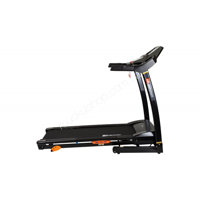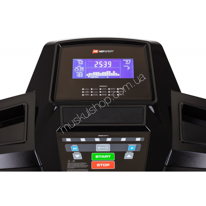 Hop-Sport Беговая дорожка Hop-Sport HS-1402 Беговая дорожка Hop-Sport HS-1402 обеспечивает бесшумную и ровную работу даже во время особо интенсивных и продолжительных тренировок, а всё благодаря современной системе амортизации. Прочная стальная рама была усилена в местах соединения по швам, дабы тренажёр мог выдерживать практически любые повышенные нагрузки и служить вам значительно дольше. Удобные размеры бегового полотна и его рифлёная поверхность позволит вам не беспокоиться о том, что вы можете случайно поскользнуться, или сойти с дорожки. Беговая дорожка Хоп-Спорт ХС-1402 отличается встроенным многофункциональным компьютером с понятной системой управления и широким экраном, на котором высвечиваются все необходимые показатели тренировочного процесса. Для того, чтобы упростить перемещение дорожки, она была оснащена специальными небольшими роликами для транспортировки. Компактные габариты, а также индивидуальный и привлекательный дизайн оборудования позволит тренажёру стать прекрасным дополнением к интерьеру любого спортивного центра, или квартиры.