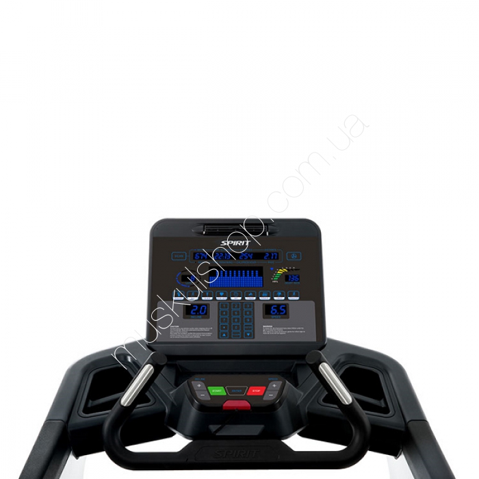 Беговая дорожка Spirit CT900 оснащается бесшумным двигателем, который не будет раздражать пользователя во время тренировки. Возле бортового компьютера, как раз под рукой, сделан держатель для стакана или бутылки с водой. Программы представленного тренажера позволяют последовательно изменять интенсивность тренировки. На ручках размещены кнопки регулировки желаемой интенсивности и необходимого наклона, а так же датчики измерения пульса. Беговая дорожка Спирит CT900 отличается от своего предшественника более широким диапазоном выбора тренировочных программ и различных режимов. Регулировка полотна дорожки для бега обеспечивает дополнительную нагрузку на мышцы ног, позволяя пользователю даже настроить бег под горку.
