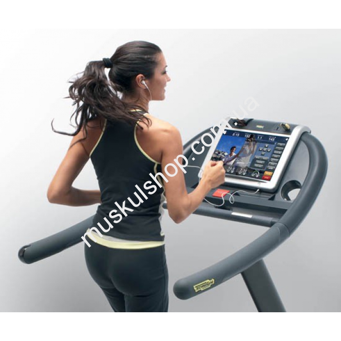 TechnoGym Беговая дорожка Technogym Run 700 TV ipod Беговая дорожка Technogym Run 700 TV ipod обладает удобной конструкцией с подпятниками, благодаря которым обеспечивается устойчивость аппарата. Амортизационная система способна поглощать любые вибрации во время тренировок, даже при интенсивном беге. Габариты дорожки позволяют забыть о вопросе её размещения, поскольку она подойдёт даже для профессиональных помещений. Полотно представленного изделия отличается своей прочностью, а потому оно устойчиво перед износом и готово служить не один год без необходимости замены.