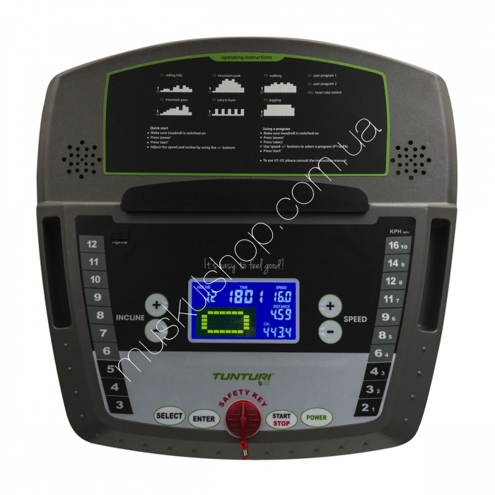 Tunturi Беговая дорожка Tunturi Pure Run 1.1 Беговая дорожка Tunturi Pure Run 1.1 относится к элитному классу дорожек, за счёт чего она отличается своей функциональностью и эргономичностью. Данный аппарат предназначается для тренировки мышц нижнего пояса, в частности, для ног, позволяя пользователю сформировать красивое и правильное тело. Отличительной её особенностью от других аппаратов можно назвать возможность тренировки и укрепления сердечно-сосудистой системы, а также улучшения общего тонуса тела. Не смотря на свой класс и тип, данный тренажёр могут использовать люди с любым уровнем физической подготовки, начиная от новичка и заканчивая опытными и профессиональными спортсменами.