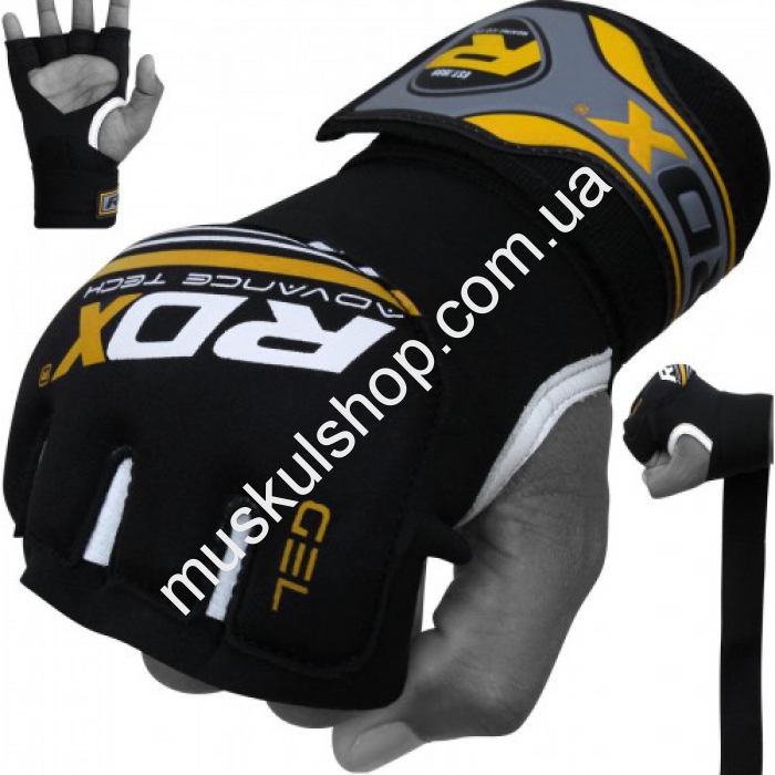 Бинты-перчатки RDX Neopren наполнены универсальным гелем, кроме этого предусмотрена вентилируемая ладонь, чтобы избежать запотевания рук во время боя. Во время стирки перчатки-бинты сохраняют свои первоначальные характеристики. Фиксируются благодаря прочной липучке. Хорошо перчатки сидят как на ладоне, так и на запястье, не сползают. Прочность швов подтверждена в боях, могут выдержать мощнейшие удары. Выполнены такие бинт-перчатки из хлопка и микрофибры. Хлопок занимает более 70 % в общей структуре перчатки. Общая длина бинтов-перчаток составляет 1,5 м, а ширина 5,5 см, перчатки желтого оттенка, имеются различные размеры на выбор.