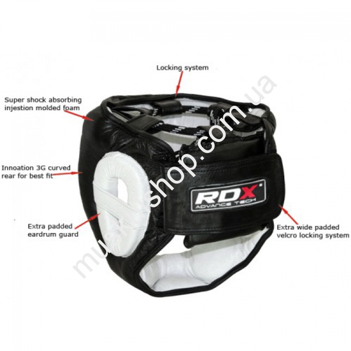Боксерский RDX шлем тренировочного типа отличается защитой подбородка, сохраняя большой обзор во время тренировки. Шлем пошит ручным способом, из кожи типа Nappa. Наполнитель шлема гель, он и поглощает удары спортсменов в голову боксера. Шлем регулируется шнуром и липучками, при этом достигается максимально приемлемый объем для головы боксера. Застежки не дают шлему соскользнуть во время боя или же провисать. Данный инвентарь обеспечит полную безопасность и комфорт во время спарринга. Шлем соответствует всем заявленным международным стандартам, имеются различные размеры на выбор. Шлем отличается хорошей вентиляцией, выведением лишней влаги с головы и шеи.