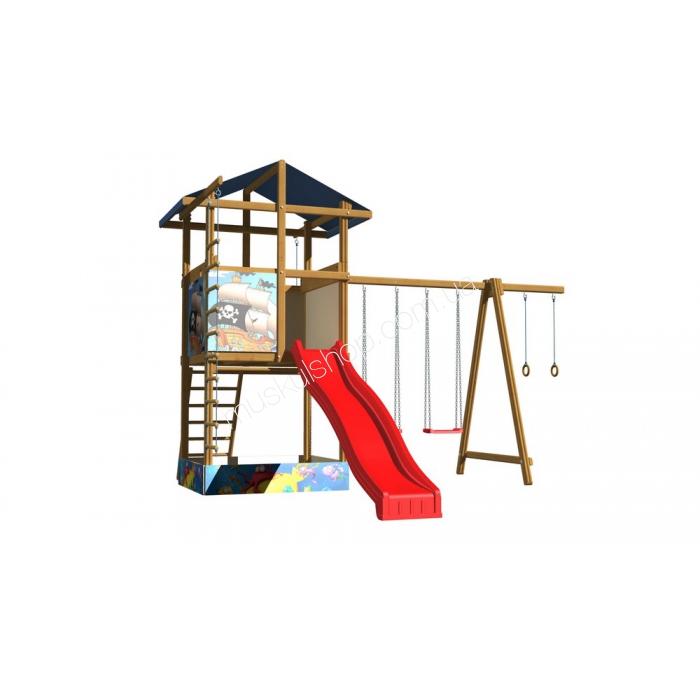 Детская площадка Sportbaby-8 придется по душе маленьких шалунишкам. Площадка комплектуется площадкой из башни с песочницей, лестницей из дерева и веревок, детской горкой и колец. Горка с гладкой поверхностью, абсолютно безопасная для спуска малышей, нет острых углов и тяжелого металлического крепления, она защищена качественной водоэмульсионной краской, конструкция выдерживает 80 кг веса малыша, площадка занимает очень мало места. Подарите своим малышам кучу различных положительных эмоций и хорошего настроения. Площадка сделана из сосны, она не раскисает от влажной погоды благодаря обработке. Площадка окрашена в приятный бежевый цвет.