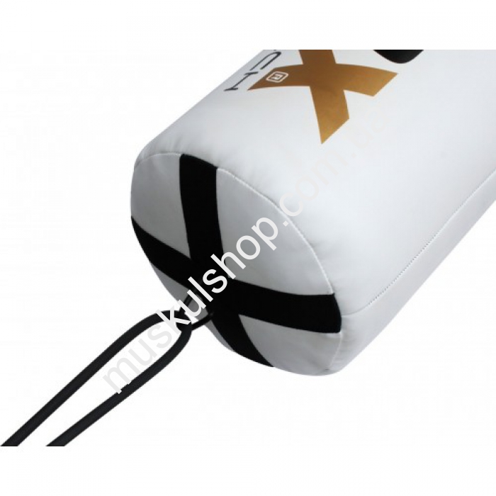 Детский RDX боксерский мешок предназначен для отработки детских ударов, тут ребенок может почувствовать себя настоящим боксером. Крепится спортивный снаряд при помощи колец, для более прочной фиксации предусмотрено также кольцо внизу мешка. Пошит мешок ручным методом из прочной и надежной кожи типа Мауа. Длина мешка составляет 1,2 м, масса регулируется застежкой от 20 до 25 кг, а диаметр снаряда не превышает 30 см. Швы очень прочные, не разрываются в момент нанесение удара. На данном типе груш ребенок сможет поразминать мышцы рук, ног, укрепит свои кисти рук, плечевой зоны, и тут же поймет, что он маленький, однако защитник своей семьи. Мешок представлен в благородном золотом оттенке, полностью соответствует всем международным нормам бокса.