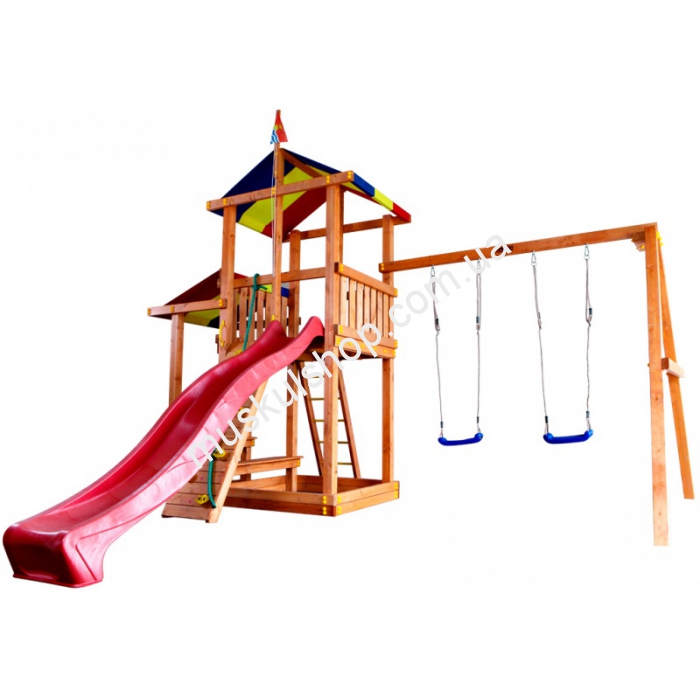 Детский игровой комплекс Sportbaby Babyland-7 внесет яркие краски в досуг ваших непосед. Комплекс изготовлен из сосны, общей массой 250 кг, цвета натурального дерева. Изделие обработано антисептиком, который не вызывает аллергических реакций. Комплекс способен выдерживать достаточно большой вес. В него входит: песочница, стол, лавочки, качели, горка для маленького скалолаза, а также детская горка. Даже спустя пару лет частой эксплуатации, такой детский комплекс абсолютно не изменит первоначальный облик. Дачный комплекс полностью безопасный, имеет различные сертификаты качества. Комплекс не требует больших площадей под свое размещение.