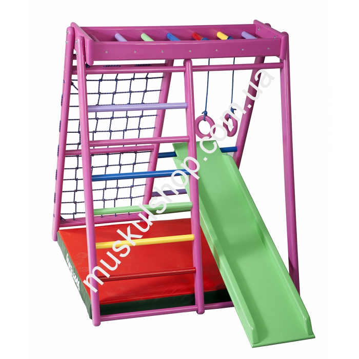 Детский спортуголок SportbabyКроха 3 Барби хорошо подойдет девочкам. Он комплектуется гладиаторской сеткой, шведской стенкой, детской 1,5 м горкой для спуска, матом для упражнения и кольцами. Модель оценят не только девочки, но и мальчики, тут все предусмотрено для активного отдыха. Комплекс изготовлен из сосны, цвета натурального дерева. Само изделие обработано специальным антисептиком, который не вызывает аллергических реакций, а также не втягивает влагу и сырость. Отлично впишется в общий дизайн детской комнаты, не требует много места под свое размещение. Желоб горки полностью безопасен, без острых углов и железных деталей. Комплекс способен выдерживать нагрузку до 80 кг, при этом масса самого изделия не превышает 45 кг.