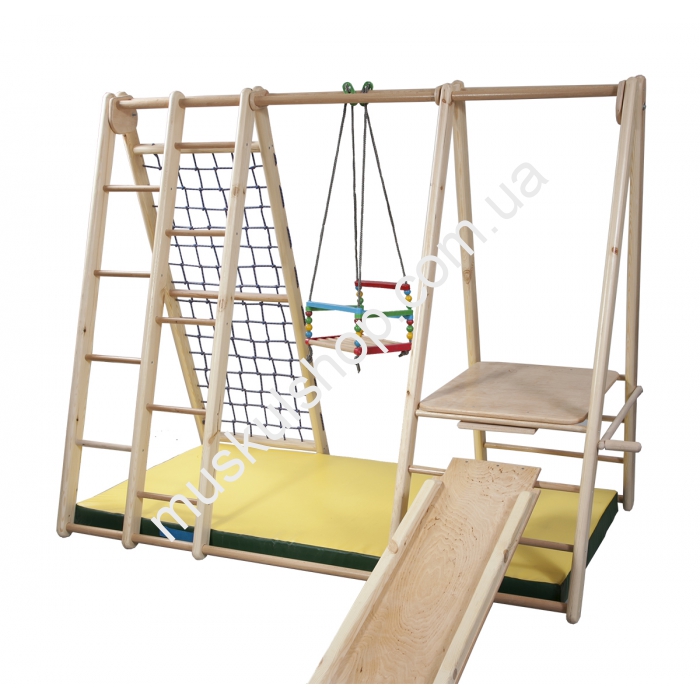 Детский спортуголок Sportbaby Малютка-3 самый лучший в своем линейном ряде, завоевал большую популярность среди детишек и взрослых. Комплекс начинают применять с пятимесячного возраста малыша, цепляя его за стенку, перекладину и кольца. Устанавливать такой комплекс можно в любом месте, большое пространство он не украдет. Комплекс выдерживает нагрузку свыше 150 кг, при этом масса самого изделия не превышает 40 кг. Все детали выполнены из прочного бука и сосны, пропитанные специальным антисептиком, представлен комплекс в цвете натурального дерева. Кроме всего перечисленного он весьма прочный, надежный. Позвольте детворе весело провести время, купите спортивный уголок!